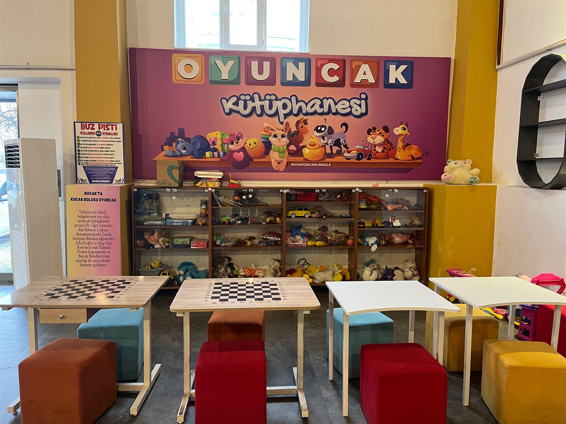 Ayrıca, çocukların gelişimine katkı sağlamak amacıyla hizmete sunulan Oyuncak Kütüphanesi, eğitici ve öğretici materyallerle donatılmıştır. Bu alan sayesinde çocuklar eğlenirken aynı zamanda paylaşma, sorumluluk ve sosyal becerilerini geliştirme fırsatı bulmaktadır.