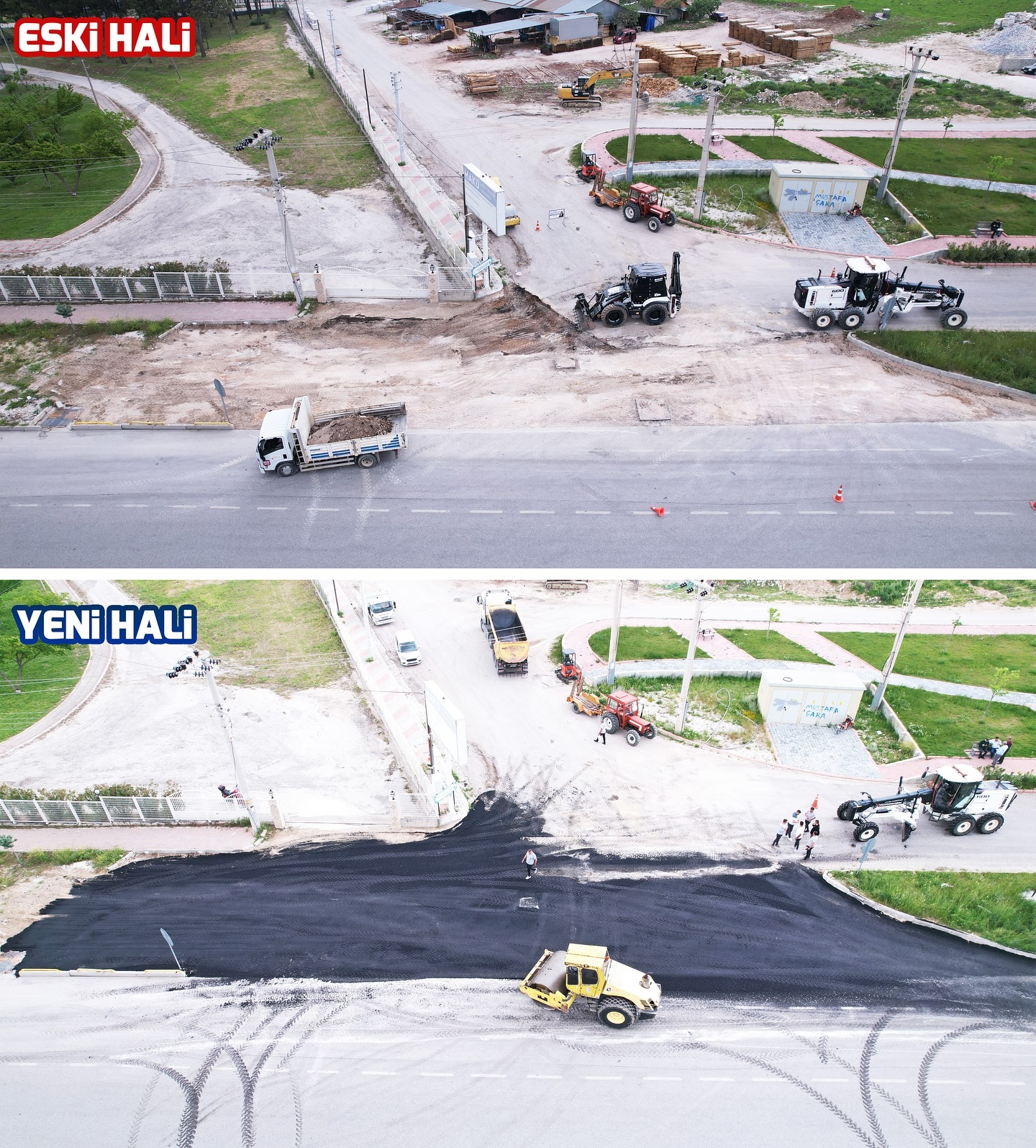 Ertuğrul Gazi Caddesi’ni Karayolları bağlantısına ulaştıran ve uzun süredir yıpranmış durumda olan parke yolumuzu sıcak asfaltla yeniledik.