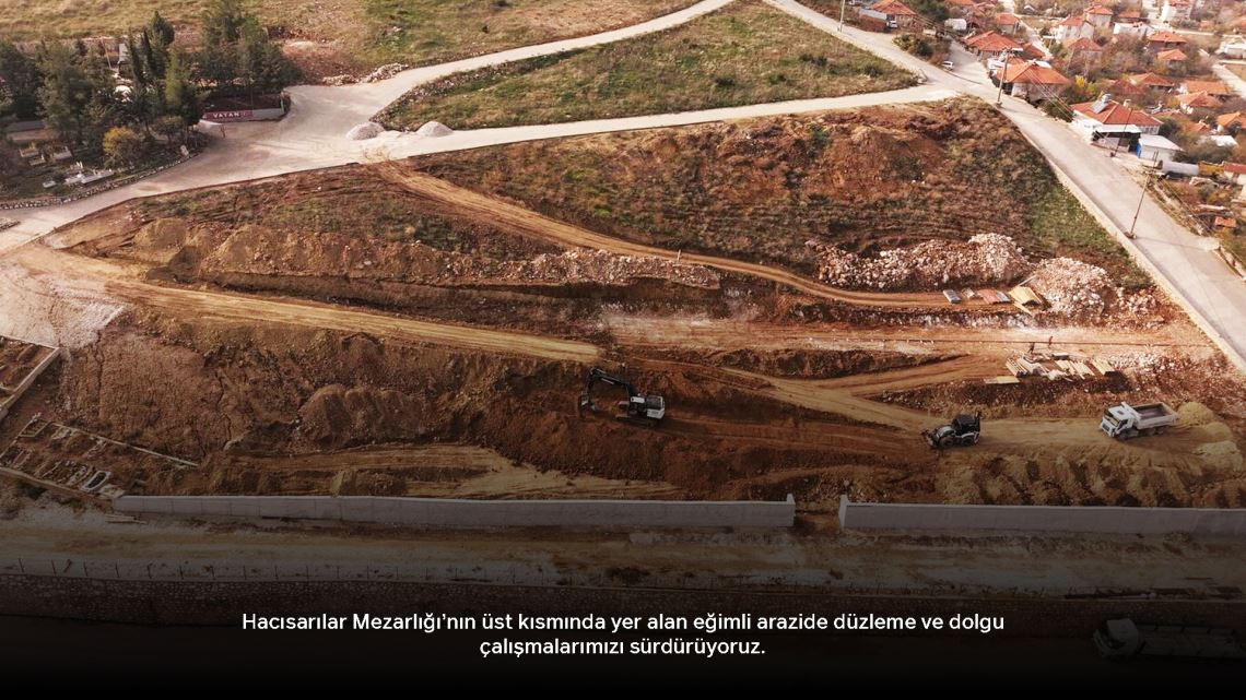 Hacısarılar Mezarlığı’nın üst kısmında yer alan eğimli arazide düzleme ve dolgu çalışmalarımızı sürdürüyoruz. Dec 13 2025 12:00AM / 15