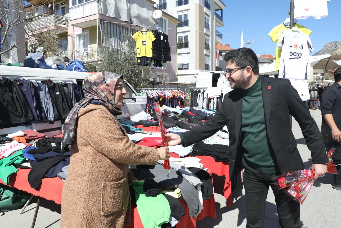 Pazar Pazarında kadın esnaflarımız ve hemşehrilerimizle bir araya gelerek 8 Mart Dünya Emekçi Kadınlar Günü dolayısıyla çiçeklerimizi takdim ettik. Cumhuriyet Halk Partisi İlçe Başkanımız Ahmet Sedat Oktay ve Kadın Kolları Başkanımız Esra Acar ile birlikte kadınlarımızın emeklerine ve hayatımıza kattıkları değere bir kez daha dikkat çektik. Belediye Başkan Yardımcımız, Meclis Üyelerimiz ve Parti Örgütümüzün de eşlik ettiği bu güzel buluşmada; emekleriyle hayatı güzelleştiren tüm kadınlarımızın 8 Mart Dünya Emekçi Kadınlar Günü’nü yürekten kutluyorum.