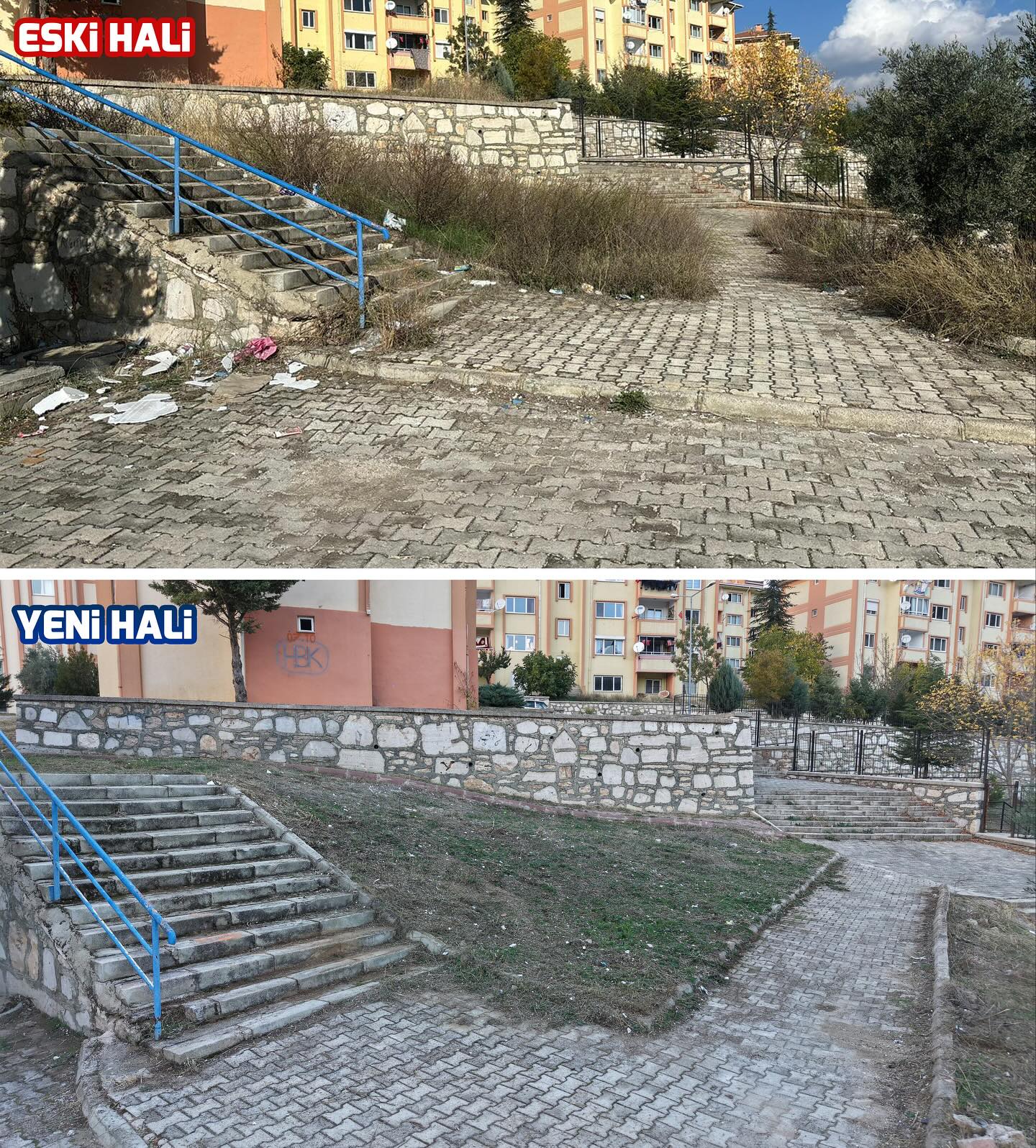 Yetmişevler Mahallemizde yabani otlar ve çöplerle kötü bir görünüme sahip alanı temizleyip çevre düzenlemesini tamamladık. Nov 13 2025 12:00AM / 4