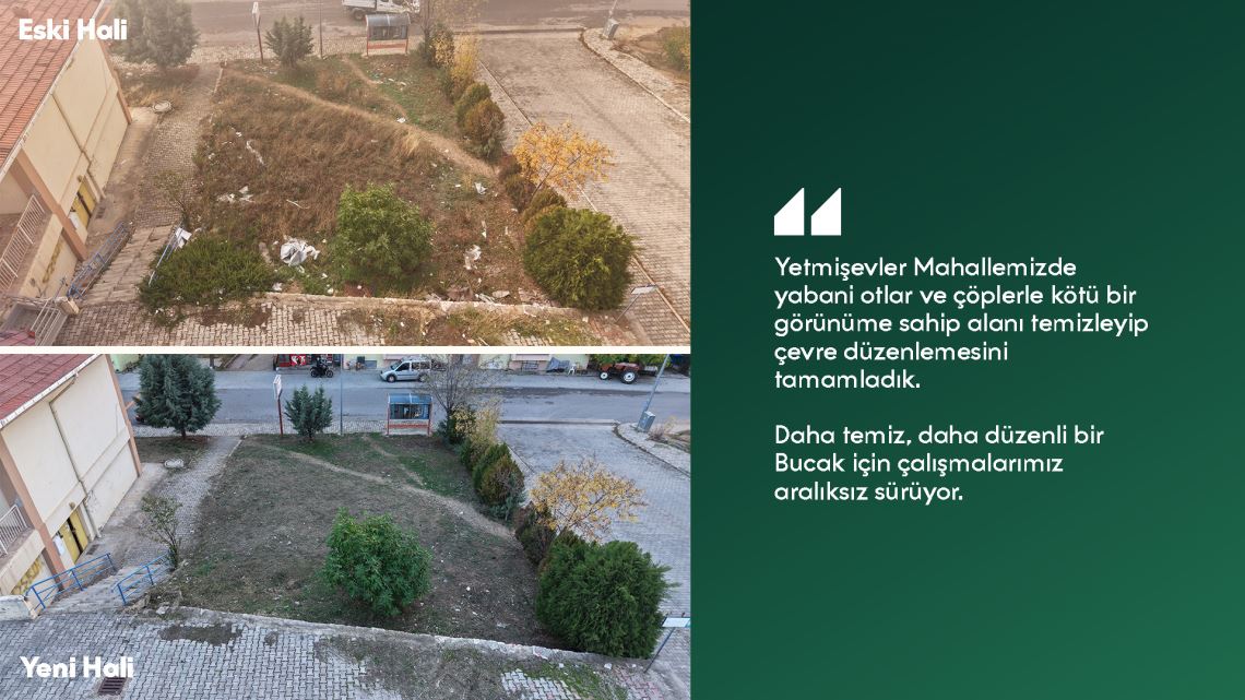 Yetmişevler Mahallemizde yabani otlar ve çöplerle kötü bir görünüme sahip alanı temizleyip çevre düzenlemesini tamamladık. Nov 13 2025 12:00AM / 28